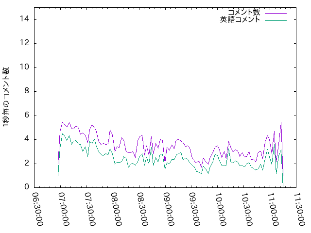 総チャット数 :62431 チャット数(日本語):1015 チャット数(スタンプ):18473 チャット数(英語 ):42943 ユニークユーザー数:8543人 ユニークメンバー数:3125人