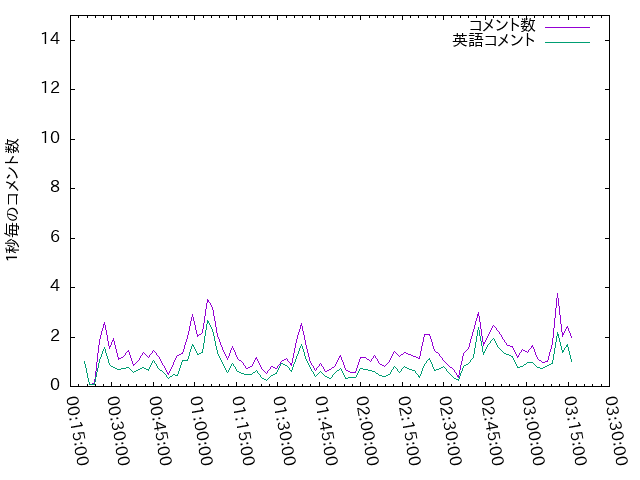総チャット数 :15236 チャット数(日本語):106 チャット数(スタンプ):5775 チャット数(英語 ):9355 ユニークユーザー数:1423人 ユニークメンバー数:411人