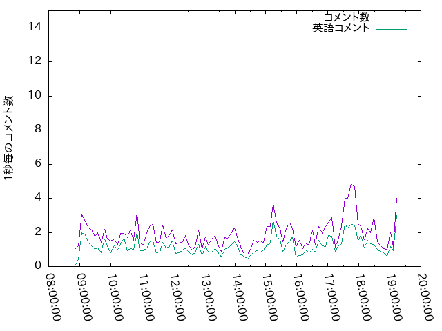 総チャット数 :72761 チャット数(日本語):745 チャット数(スタンプ):27364 チャット数(英語 ):44652 ユニークユーザー数:3858人 ユニークメンバー数:1097人